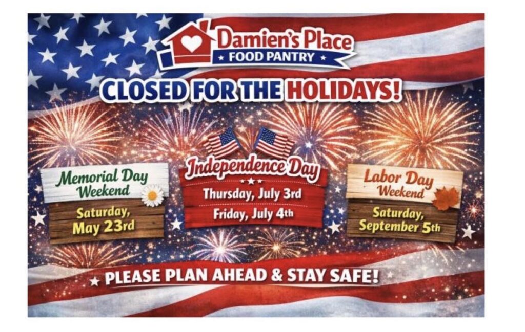 Please plan ahead and save the dates that Damien’s will be closed for the holidays.